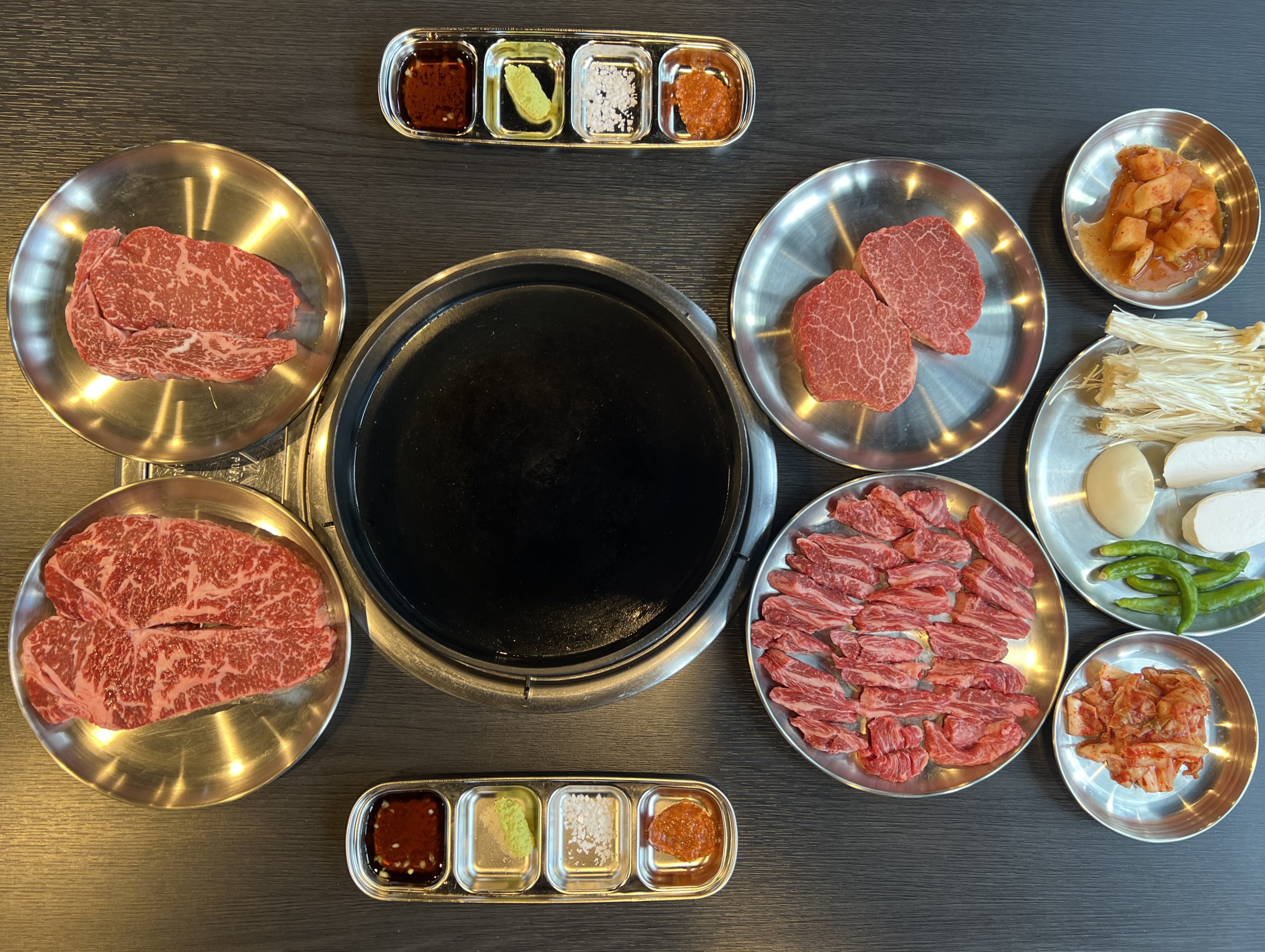 1++ 한우 꽃등심 100g 18,900 | 1++ 한우 갈비살 100g 18,900 | 1++ 한우 살치살 100g 29,900 | 1++ 한우 채끝등심 100g 23,900 | 1++ 한우 토시살 100g 23,900 | 1++ 한우 치마살 100g 23,900 | 1++ 한우 제비추리 100g 23,900 | 1++ 한우 부채살 100g 18,900 | 1++ 한우 모듬 100g 18,900 | 한돈 1등급 삼겹살 100g 6,900 | 1++ 한우 육회 200g 22,000 | 한우된장찌개 9,000 | 한우된장술밥 9,000 | 라면 4,000 | 냉면 7,000 | 철판 볶음밥(셀프바에서 무료로 이용) 0