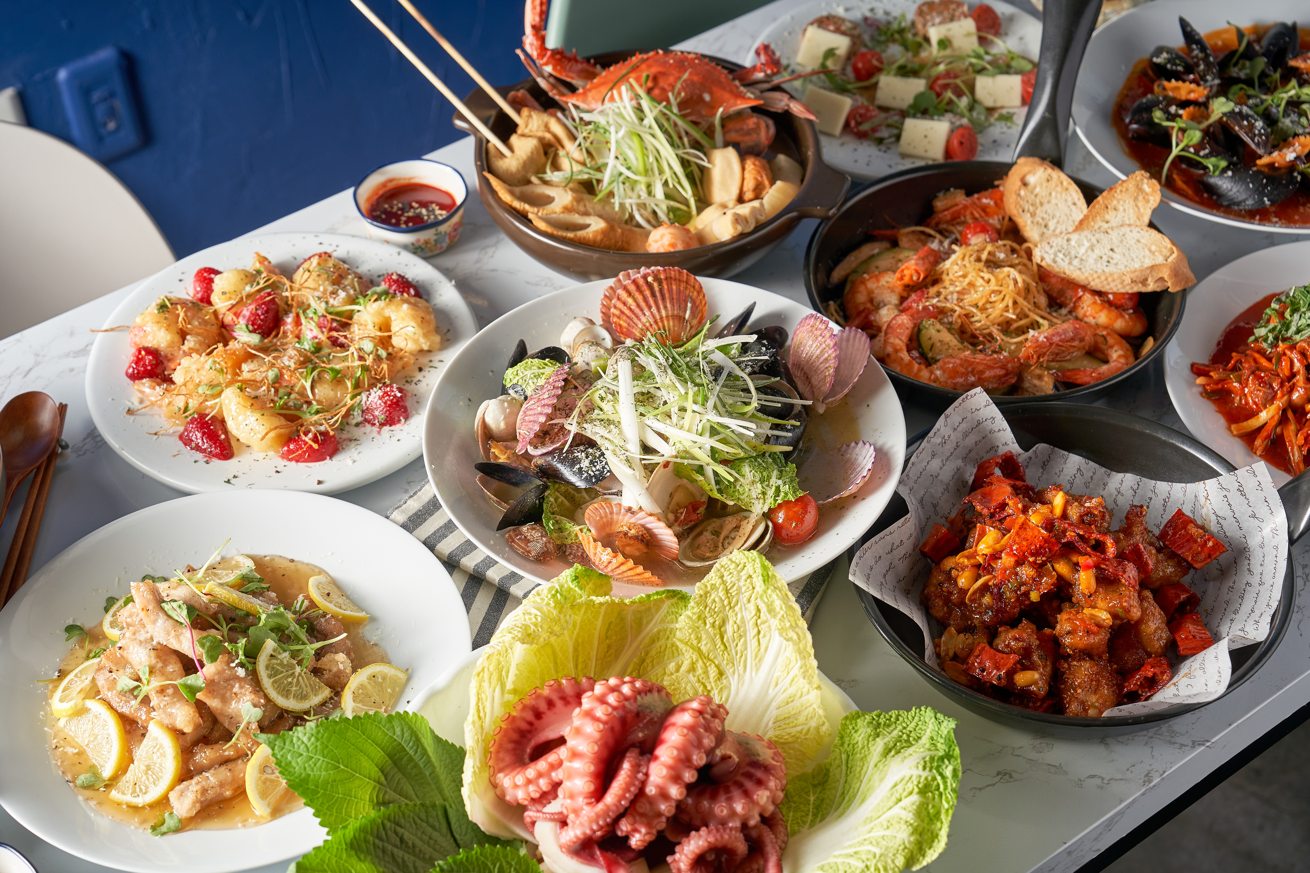 1++차돌육사시미삼합(우니+단새우) 56,000 | 비스큐감바스 21,000 | 향라깐풍치킨 19,000 | 홍합토마토스튜 17,000 | 통골뱅이진미채쫄면 25,000 | 문어숙회 28,000 | ++1차돌육사시미 31,000 | 우니&단새우 31,000 | 칼칼맑은백합오뎅탕 21,000 | 손두부참치그라탕 21,000 | 롱샴샤도네이화이트와인 36,000 | 산다라모히또 29,000 | 하우스레드와인 6,000 | 롱샴쉬라레드와인 36,000 | 돈산티아고 23,000 | 화요25 30,000 | 일품진로25 30,000 | 문어세비체 19,000 | 살얼음생맥주500cc 4,500 | 문어가라아케 17,000 | 유자폰안키모 11,000 | 핫윙&또띠아나초 15,000 | 고로케4종(랍스터비스크,게살크림등) 9,000 | 감자튀김 10,000 | 아귀포&땅콩 10,000 | 꿀토마토 7,000 | 오이무침 7,000 | 꿀아몬드샤베트 5,000 | 가쿠빈하이볼 9,000 | 짐빔하이볼 8,000 | 장스하이볼 6,000 | 캐리비안펀치하이볼 6,000 | 블루하와이안하이볼 6,000 | 레몬하이볼 6,000 | 논알콜하이볼 6,000 | 레몬꿀아몬드샤베트 5,000 | 오이무침 7,000