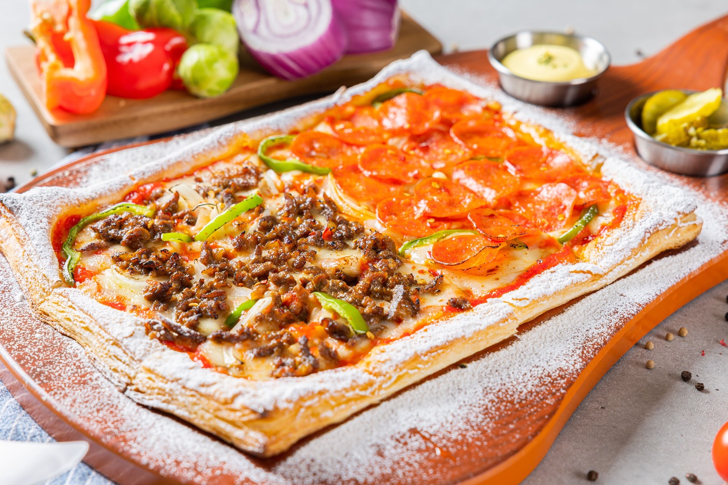 “”새우로 채운 풍부한 맛의 피자””